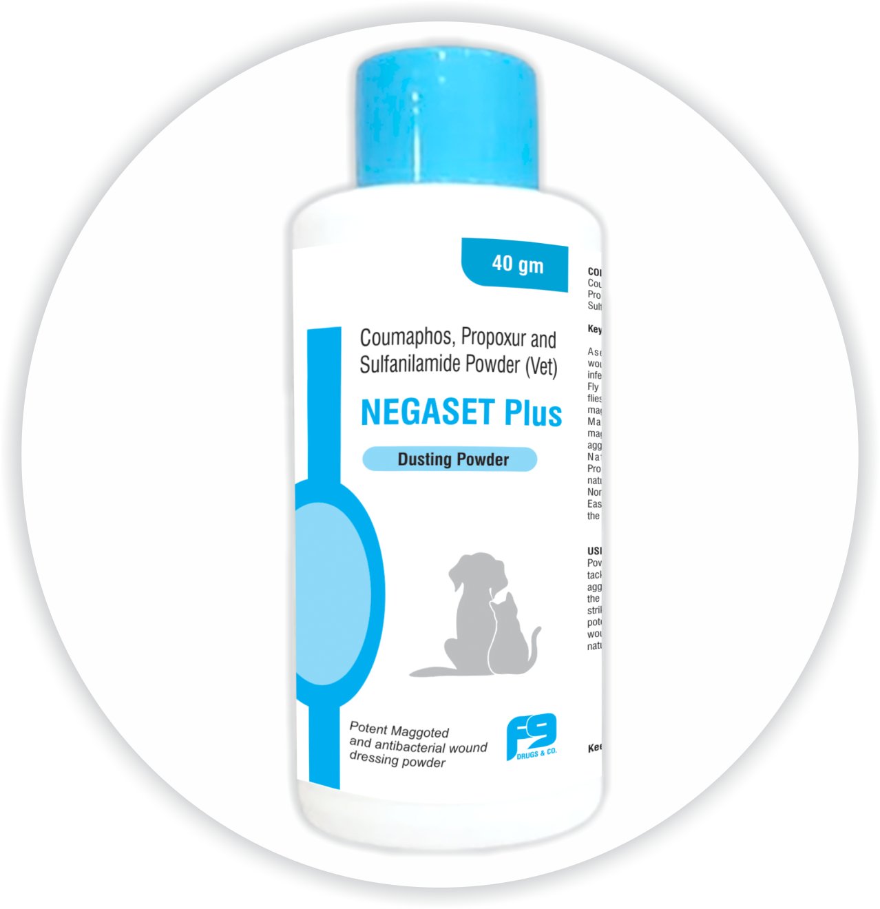 NEGASET PLUS Dusting Powder is a potent and effective wound dressing powder designed to support natural wound healing in animals. Formulated with a unique blend of ingredients, Negasunt maintains aseptic conditions, repels flies, and kills maggots, ensuring a clean and conducive environment for wound recovery.